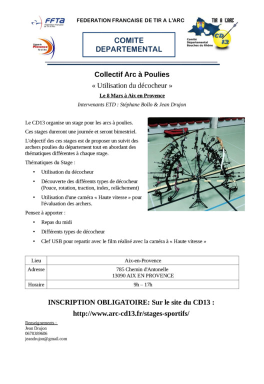 Le CD13 organise un stage pour les arcs à poulies le Dimanche 8 Mars à Aix en Provence.
