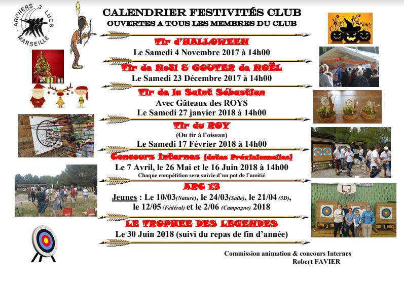 Suite à la réception des dates de l'arc 13 pour nos jeunes archers, Robert à modifier le calendrier des concours internes, voici le nouveau calendrier :